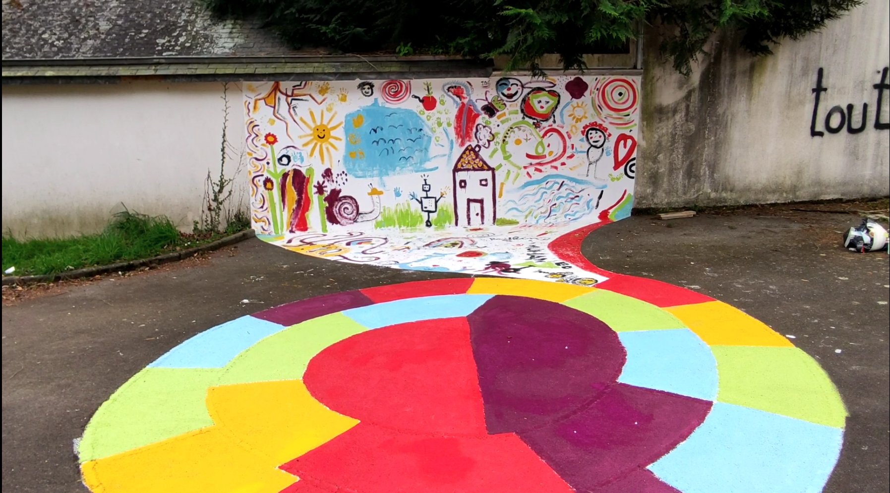 The creation of colorful drawings on the wall of the playground at the former child psychiatry hospital of Bois Perrin aims to breathe new life into a space that appears abandoned. This three-month project included phases of research, as well as meetings and exchanges with the children. It culminated in the realization of an installation designed by the children of the Bois Perrin neighborhood.